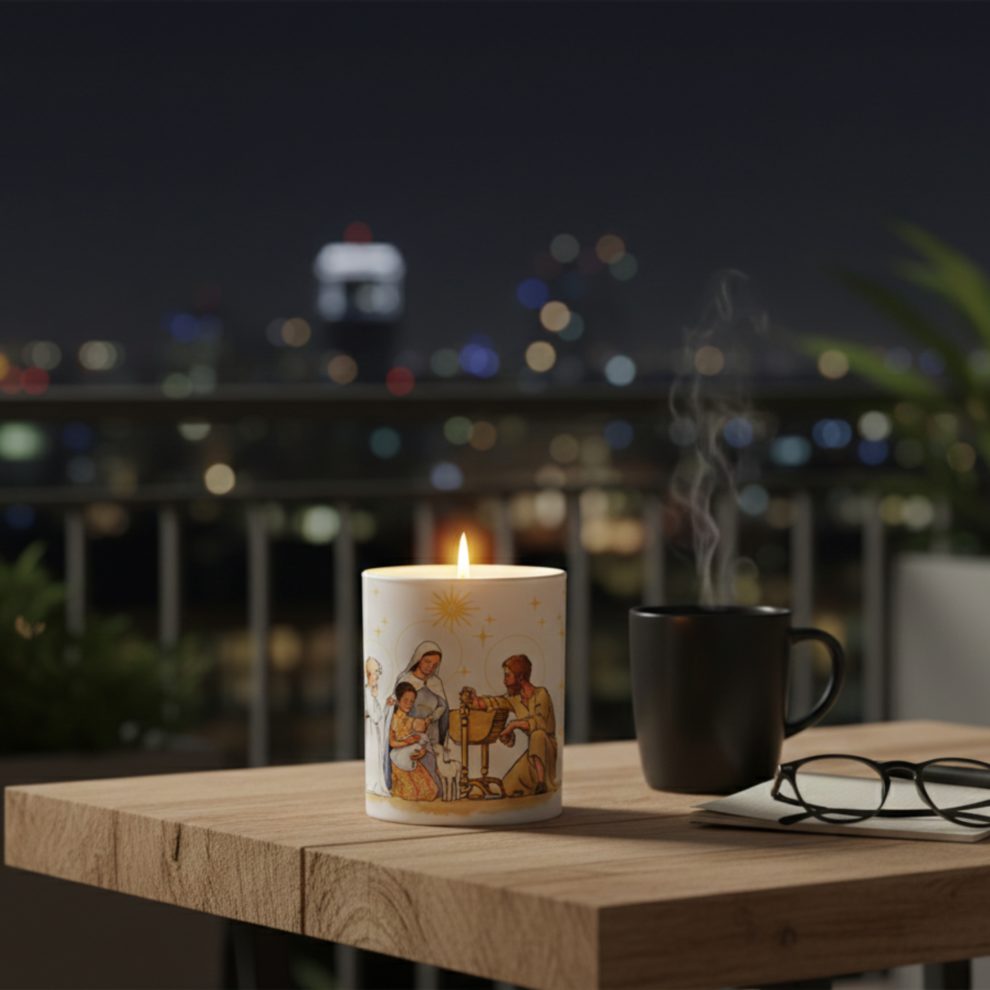 Bougie parfumée à l'encens : crèche de Noël