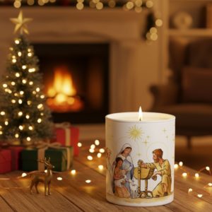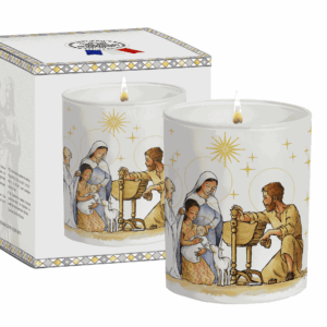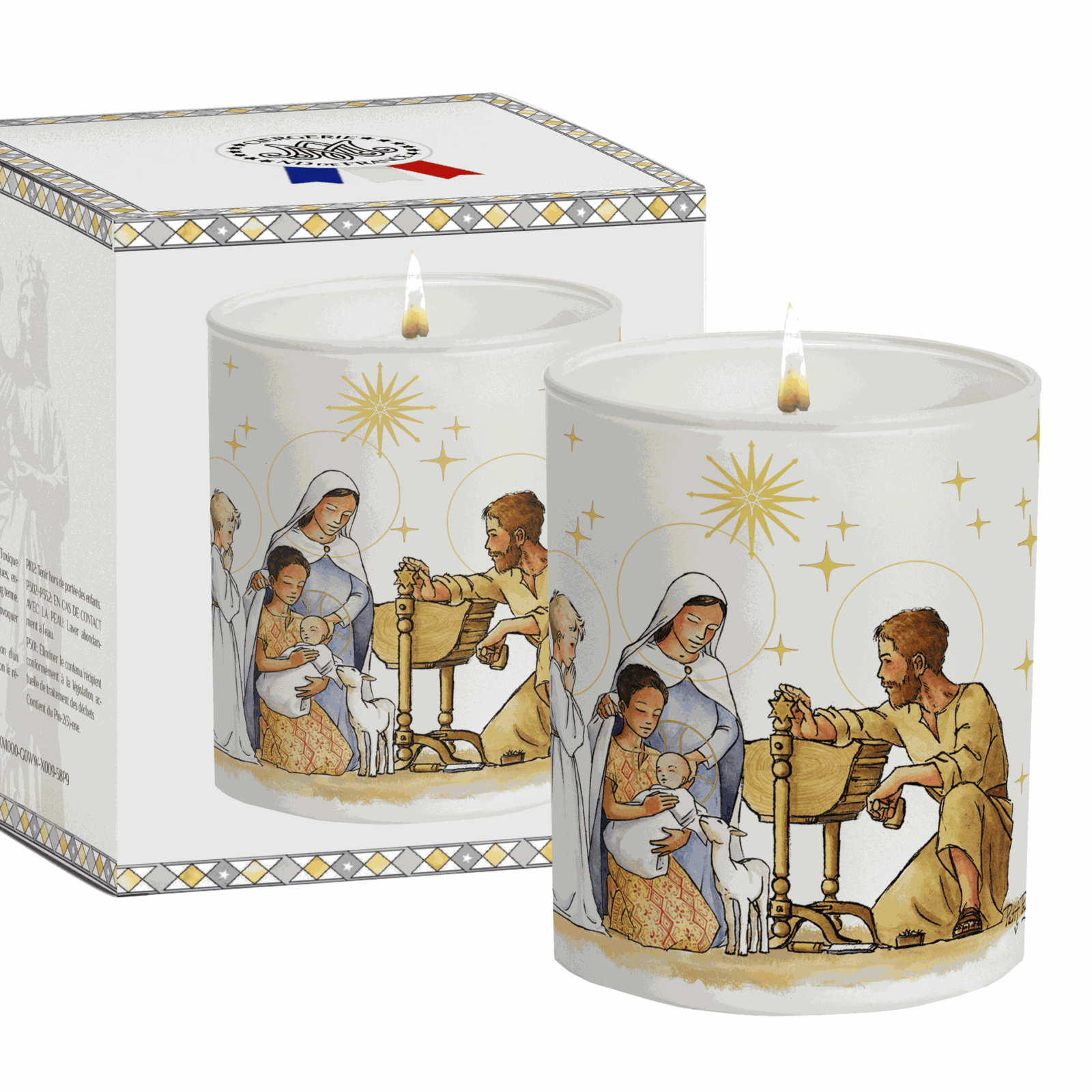 Bougie parfumée à l’encens conçue et fabriquée dans les ateliers de la Ciergerie Notre Dame de France au Puy en Velay. Une belle bougie à offrir pour illuminer votre coin prière familial ou tout simplement pour décorer et parfumer votre intérieur ! En partenariat avec Petit Page qui a créé cette très belle illustration de la crèche de Noël !