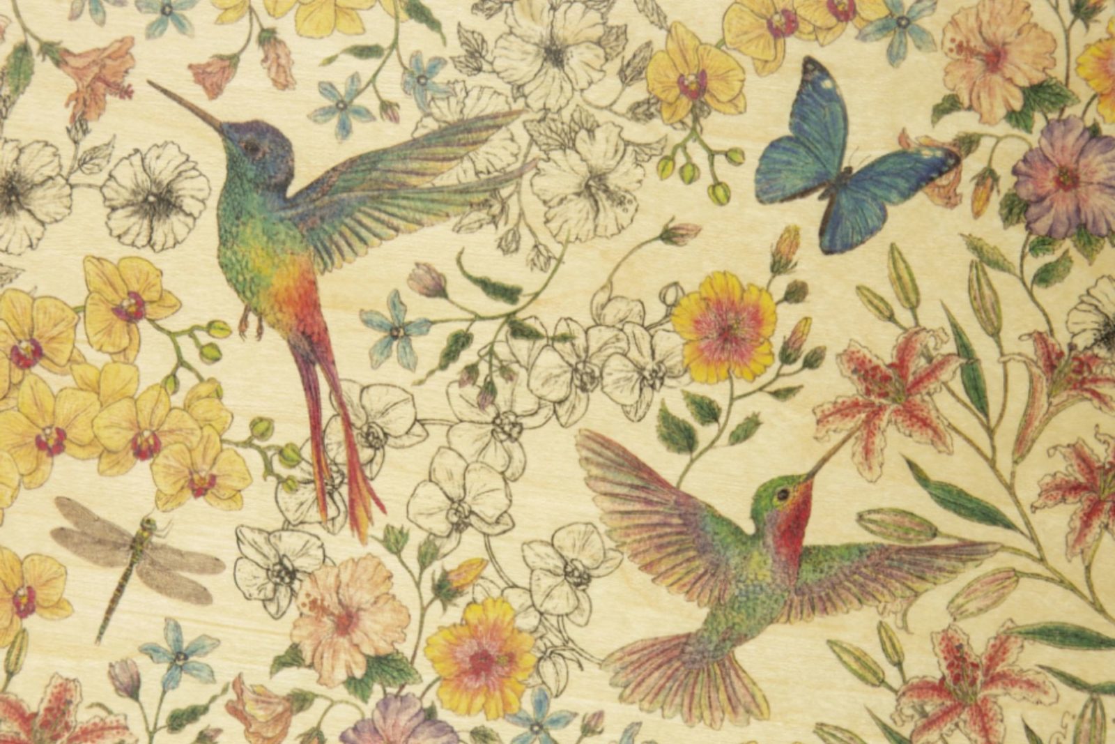 Carte en bois - Black and Colors Colibris