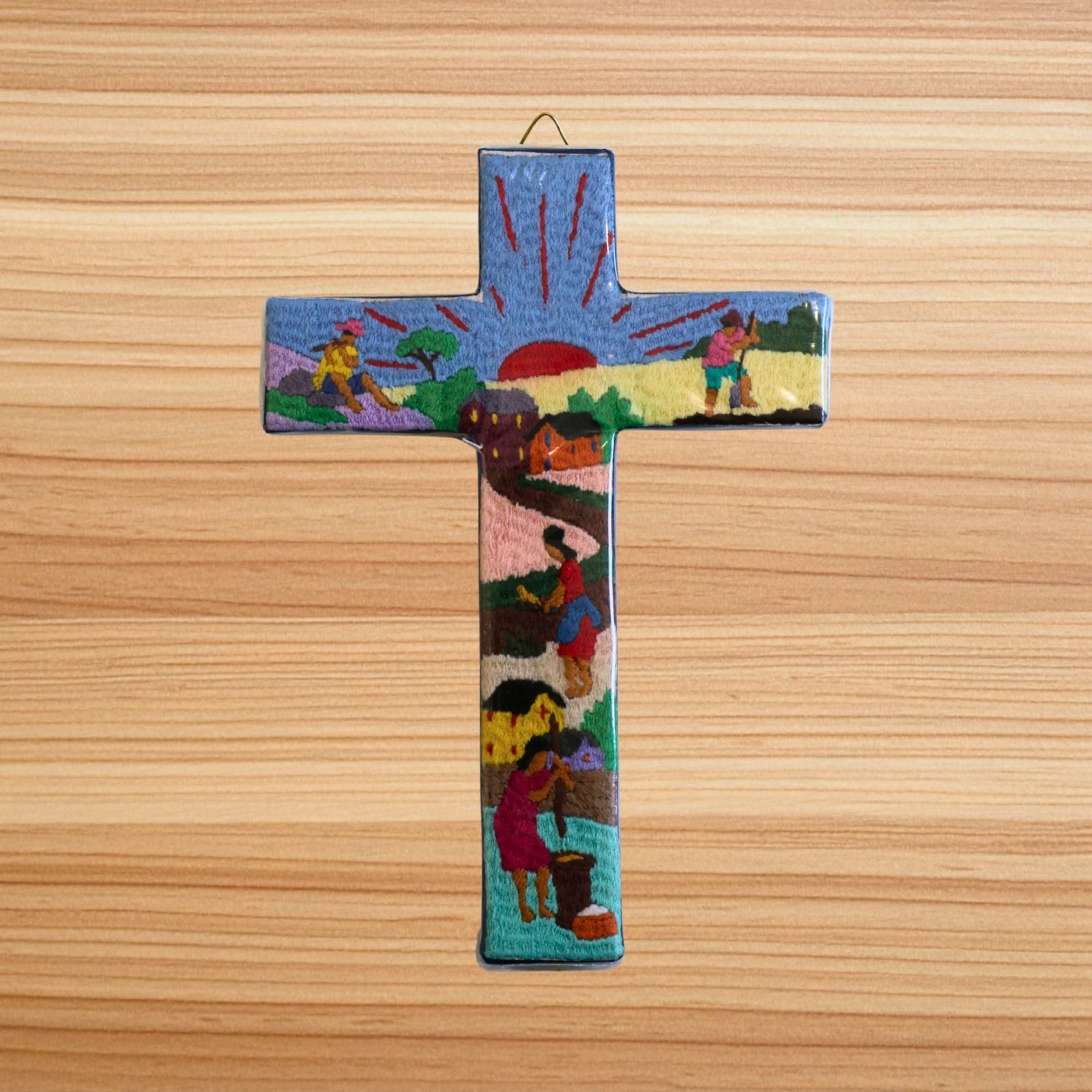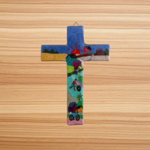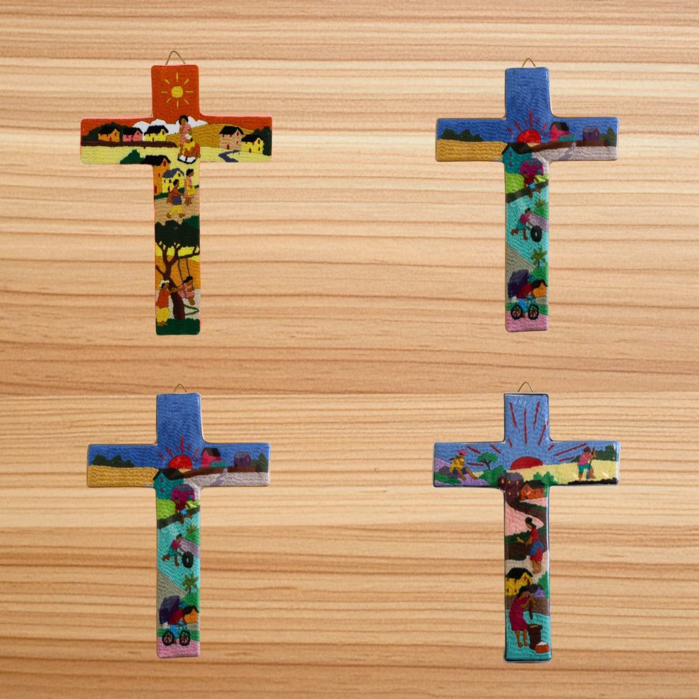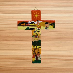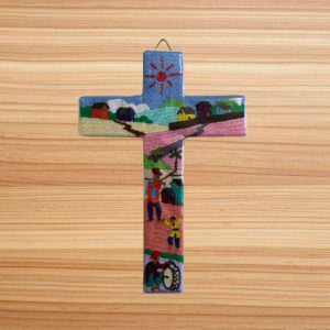 Découvrez nos croix entièrement réalisées à la main par les Petites Soeurs de l’Evangile à Antananarivo, qui illustrent avec finesse des scènes de vie typiquement malgaches. Chaque détail de ces broderies colorées témoigne d’un savoir-faire transmis avec amour et patience. Un objet où se mêlent culture, foi et artisanat !