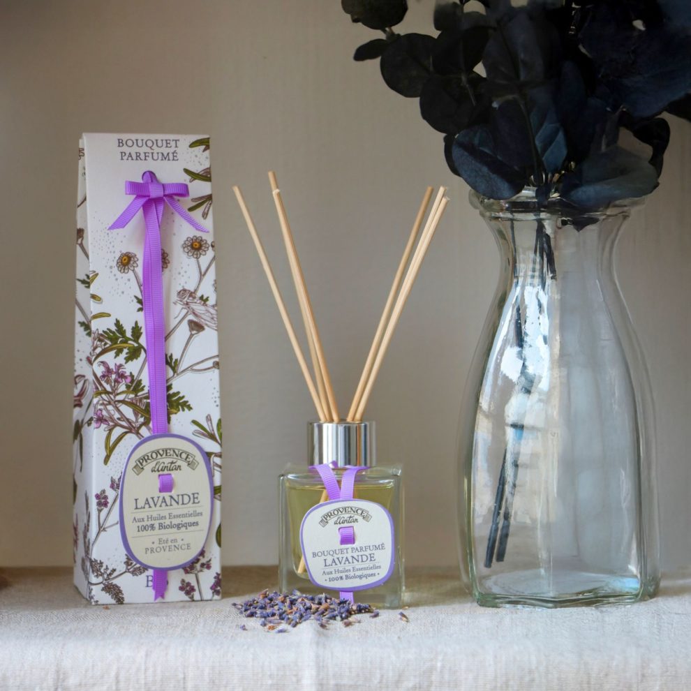 Le bouquet parfumé Lavande peut s’utiliser dans toutes les pièces de la maison et vous transportera directement au cœur de la Provence !