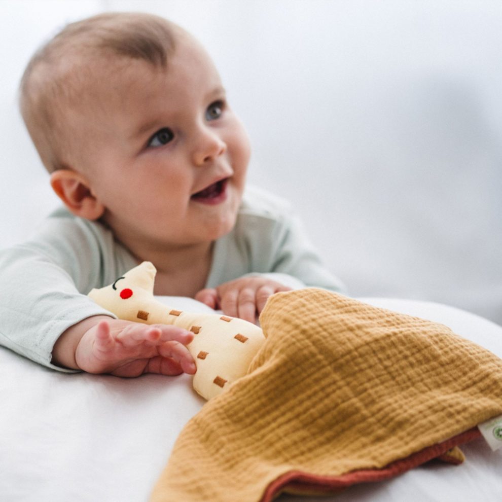 De plus, la simplicité de ses formes et de son visage stimulent l’imagination de votre enfant. La matière lange est très douce et agréable au toucher. Doudou renard en coton bio est un véritable compagnon pour accompagner bébé lors de ces premières expériences.