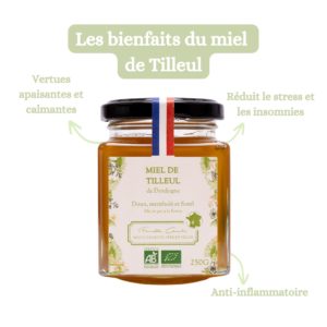Le miel de tilleul bio : des notes mentholées pour allier à la fraîcheur des fleurs de tilleul de Dordogne.