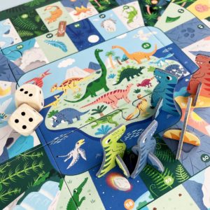 L’aventure se déroule tout au long de la célèbre spirale du jeu de l’oie pour atteindre la case 63 et rejoindre l’île aux dinosaures. Les cases « passages secrets » et « raccourcis » aident à aller plus vite mais attention aux différents pièges sur le chemin !