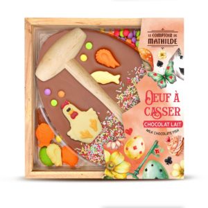 Ajoutez une touche d’amusement et de gourmandise à votre chasse aux œufs avec cet œuf en chocolat au lait à casser. Élégant et délicieux, il promet un moment ludique et savoureux pour petits et grands.