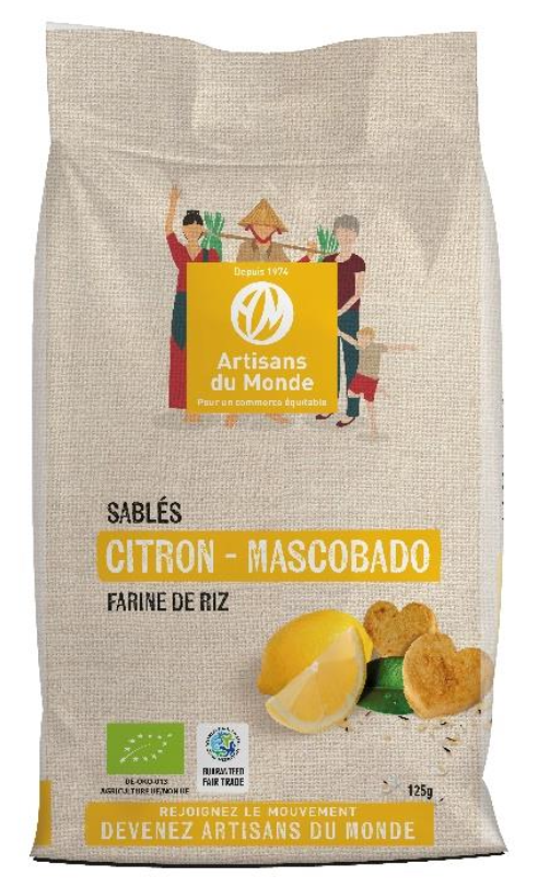 Sablés à base de farine de blé et de riz, de sucre Mascobado et d’huile de citron issus